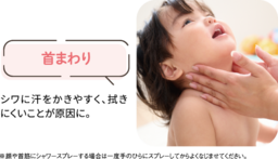 本商品は、赤ちゃんから敏感肌の大人まであせも・肌あれを防ぐ、首・背中・おしり・全身使える薬用のあせもシャワーです。