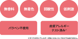 無香料・無着色・弱酸性・低刺激にこだわった配合なので、肌への刺激に弱いママ・パパにもぴったり。